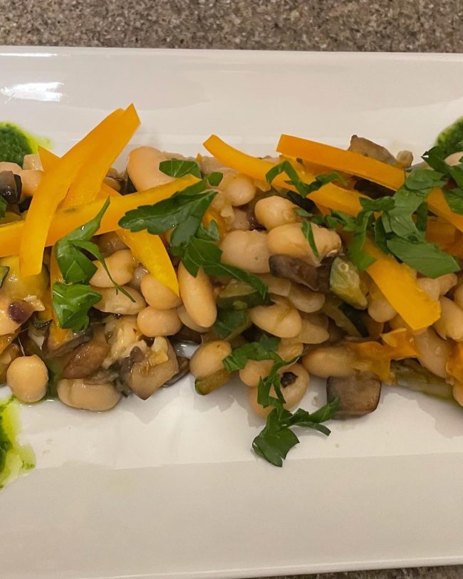 ZoomDetails White Bean and Roasted Eggplant Cassoulet with Marinated Yellow Peppers and Arugula Pesto (Chef Anthonys Creation)EntreesBy Avinash ShindeDecember 14, 2022Leave a comment
