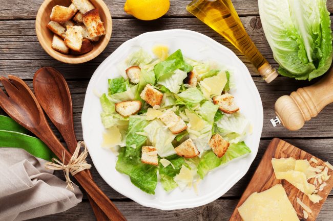 Ingredients: Romaine lettuce Parmesan cheese Capers Lemon Egg white Chili Garlic Vegetable oil Sugar Salt Pepper