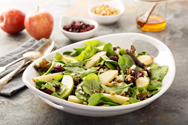Ingredients: Mixed greens Walnuts Raisins Salt Pepper Balsamic vinegar Olive oil Garlic Shallots Parsley Sugar Salt Pepper