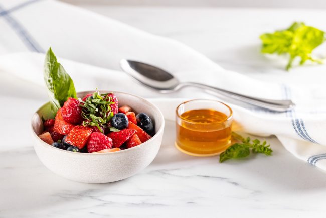 Ingredients: Strawberries Blackberries Raspberries Blueberries Heavy cream Sugar Salt